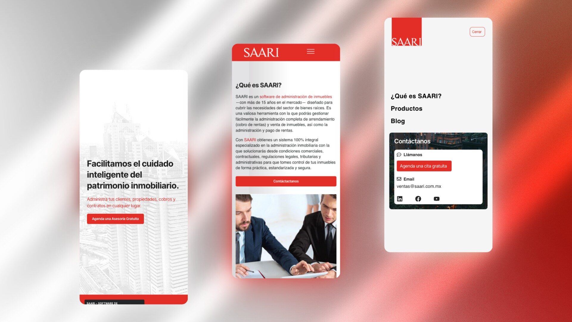 SAARI es una empresa de software B2B que ofrece una solución “Todo en un solo sistema” para la gestión del patrimonio inmobiliario. Como compañía tecnológica, su sitio web es su principal carta de presentación y una herramienta crucial para la generación de leads.